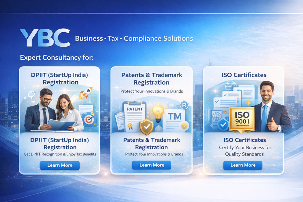 We support startups, companies, and traders with DPIIT, GST, Income Tax, ESI, PF, IEC, FSSAI, LEI, and annual filings.